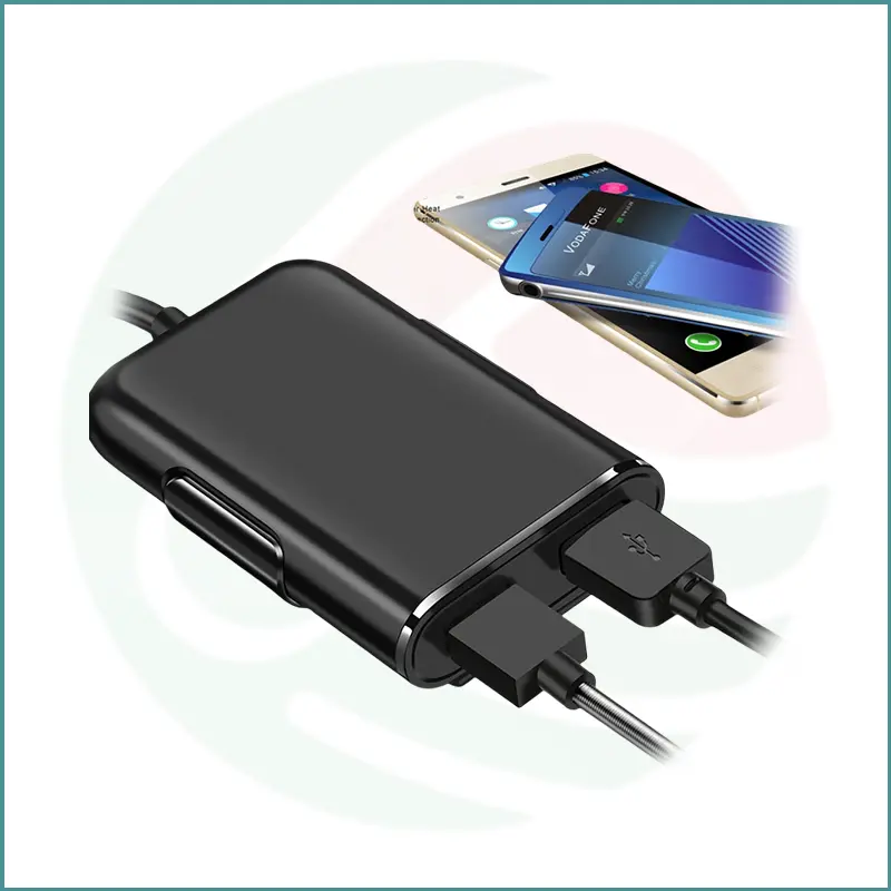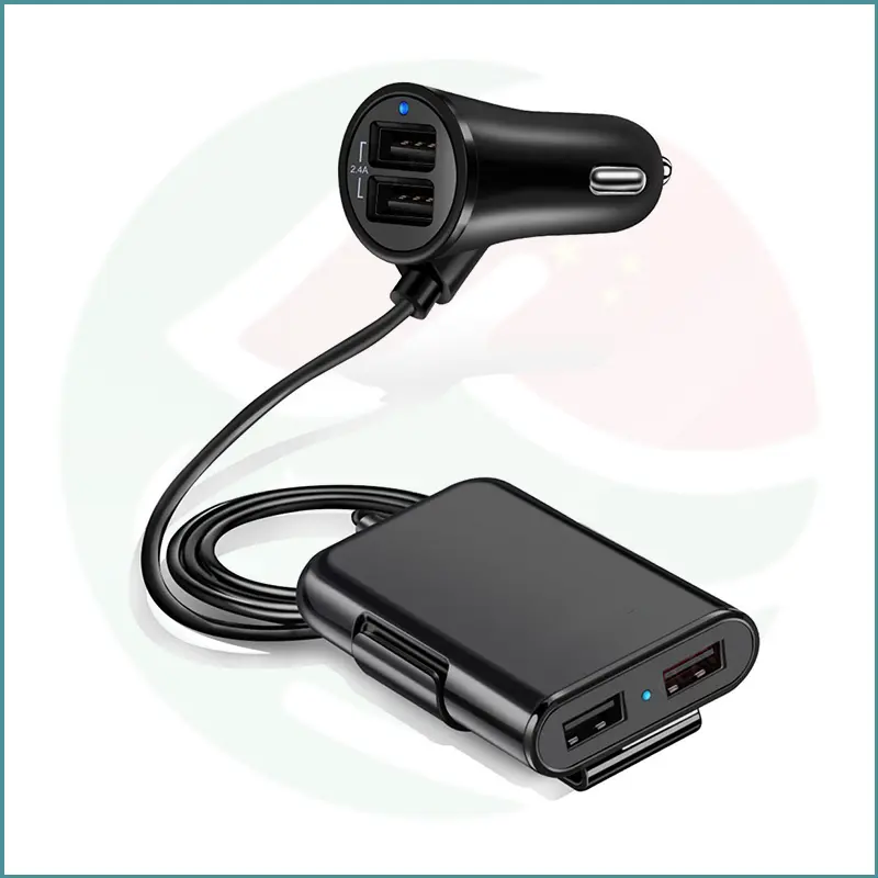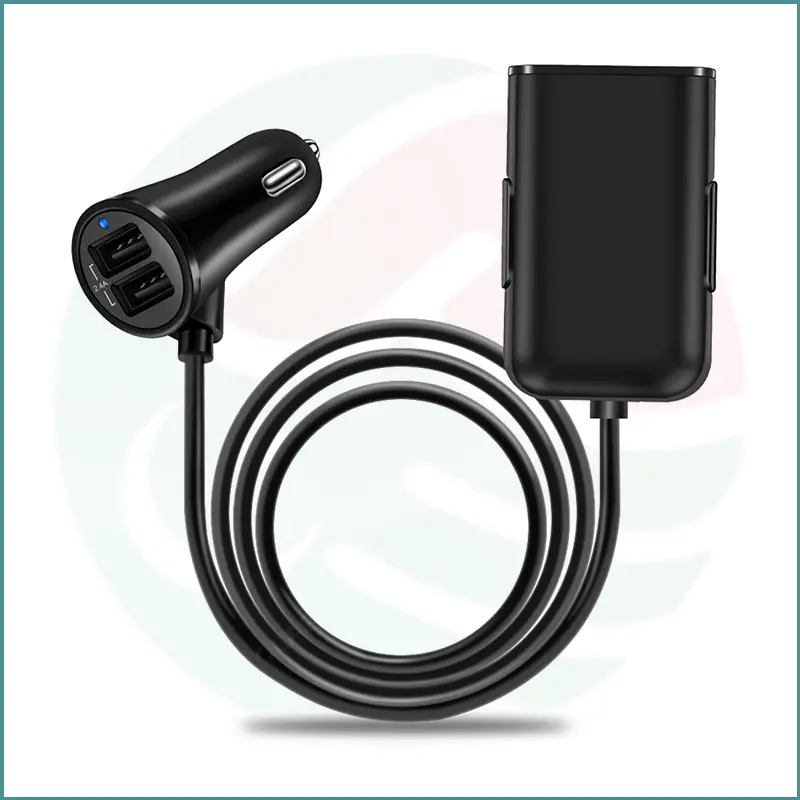 High‑power 48W car charger with 4 USB ports and extended 1.8m cable for front and back seat charging.