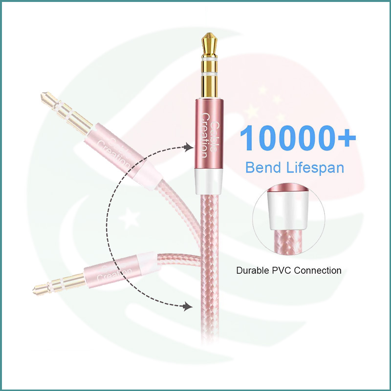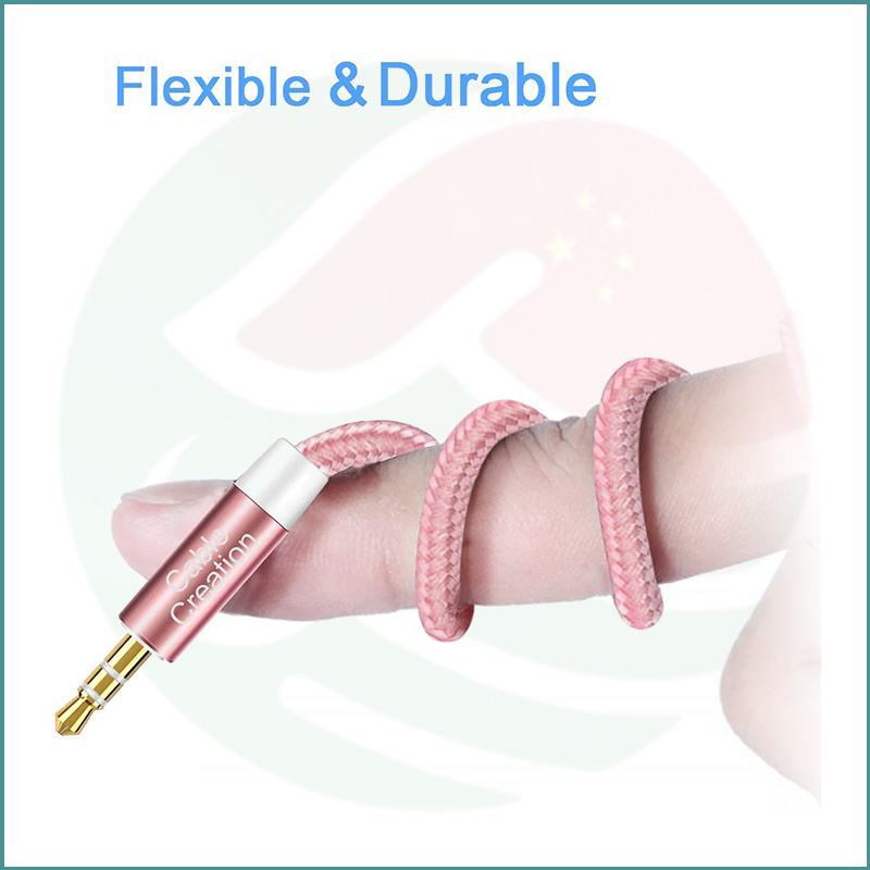 CableCreation 3.5mm male to male aux cable — Hi‑Fi sound, nylon braided, gold‑plated connectors, universal compatibility.