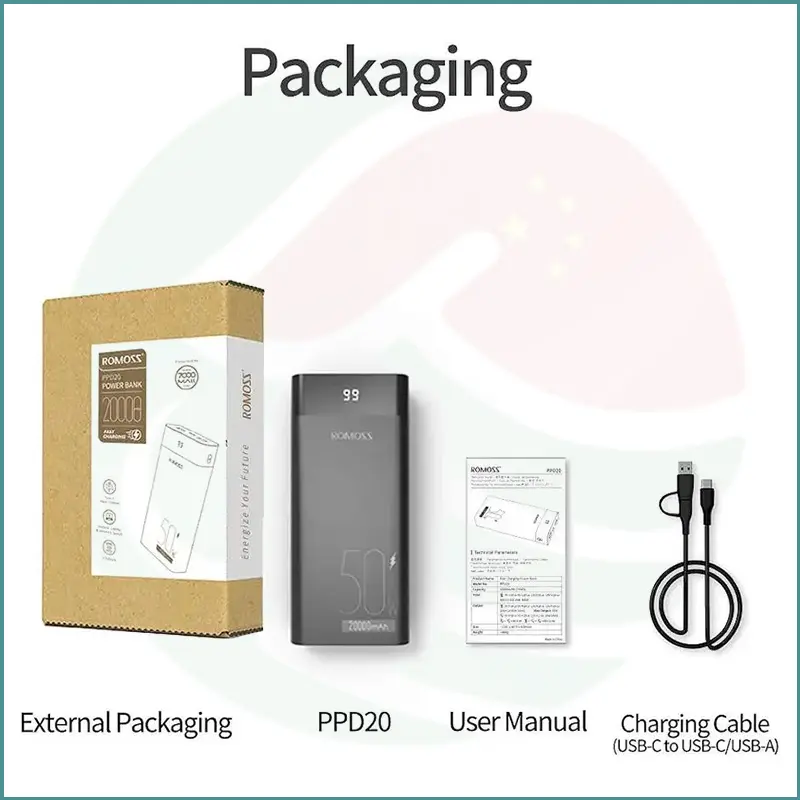 - Total Output: 50W max, powerful enough for business and travel needs